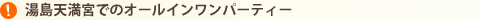 味だけじゃない、バリエーションだけでもない、値段だけでもない、手際の良さだけでもない…その全てが揃っているからこそ、お客様の満足度につながります!どれも欠けない!どこも手を抜かない!…そんな宴会を「オールインワンコーディネイト」するのが湯島天満宮の宴会です。